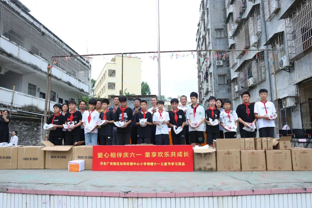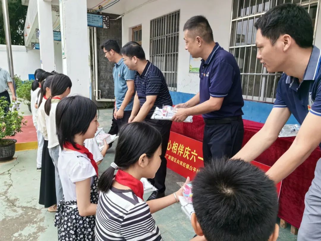 “不管在哪里投資,都要為當地經濟社會做貢獻”的投資理念,改善鄉村兒童學習生活環境,履行企業的社會責任,助力形成全社會關心和參與愛心助學的氛圍,5月29日上午,華友廣西園區到周邊的松旺鎮潭蓮村,雙旺鎮白平村、邦杰村、曾村和中心小學等5所小學走訪慰問,廣西區域管理中心及各產業集團廣西基地干部代表為5所小學3700多名學生送上書包、水杯、馬克筆和筆記本等學習用品作為兒童節禮物。
