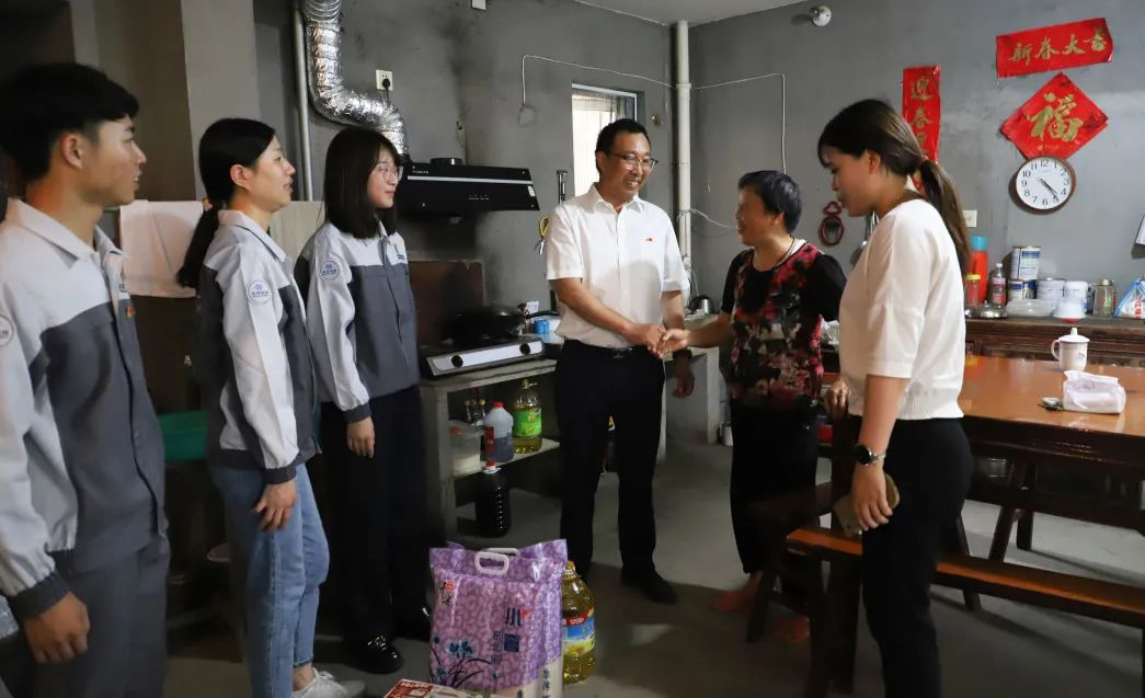 華友始終秉承著“不管在哪里投資,都要為當地經濟社會做貢獻”的投資理念,會議結束后,吾文明及黨員代表共同前往江畔社區黨群服務中心,實地座談了解貧困戶情況并上門走訪慰問。