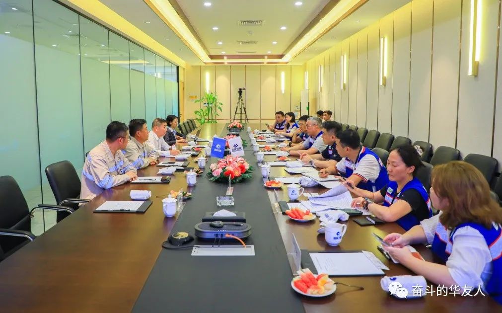 黃善云副總經(jīng)理代表印尼鎳產(chǎn)業(yè)集團(tuán)向謝偉副行長一行蒞臨指導(dǎo)表示歡迎,對印尼華越等項目給予的關(guān)心支持表示感謝,同時介紹了項目的建設(shè)發(fā)展歷程、戰(zhàn)略意義及當(dāng)前的運營情況。華越項目充分貫徹“綠色+生態(tài)”設(shè)計理念,集有色金屬冶煉和化工提煉于一體,具有低成本、低能耗、綠色環(huán)保、低碳排放等多重優(yōu)勢。華越的建設(shè)和投產(chǎn),創(chuàng)造了當(dāng)前世界規(guī)模最大、建設(shè)速度最快、達(dá)產(chǎn)時間最短的行業(yè)紀(jì)錄。項目于今年9月刷新了單月產(chǎn)能超設(shè)計產(chǎn)能40%以上的新紀(jì)錄,這是銀企深入合作產(chǎn)出的豐碩成果,希望未來浦發(fā)銀行一如既往的支持華友印尼項目建設(shè)發(fā)展,共同為新能源鋰電事業(yè)賦能蓄勢。