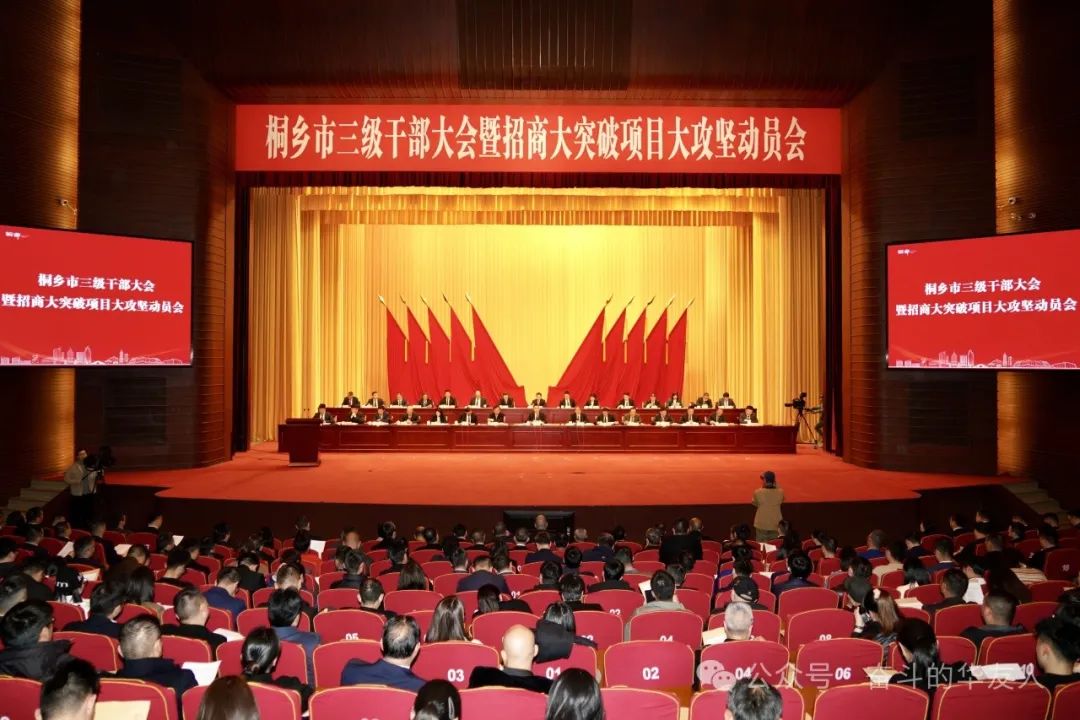 人勤春早功不負,奮斗實干啟新程。今天(2月17日),桐鄉(xiāng)市召開三級干部大會暨招商大突破項目大攻堅動員會,總結成績、表彰先進、樹立典型、提神鼓勁,動員全市上下擼起袖子加油干,重整行裝再出發(fā),奮力書寫中國式現(xiàn)代化的桐鄉(xiāng)篇章,加快建設數(shù)字文明共富美好新桐鄉(xiāng)。中共桐鄉(xiāng)市委書記于會游,桐鄉(xiāng)市委副書記、市長王堅等四套班子領導出席大會。集團董事長陳雪華參加會議并于主席臺就座。