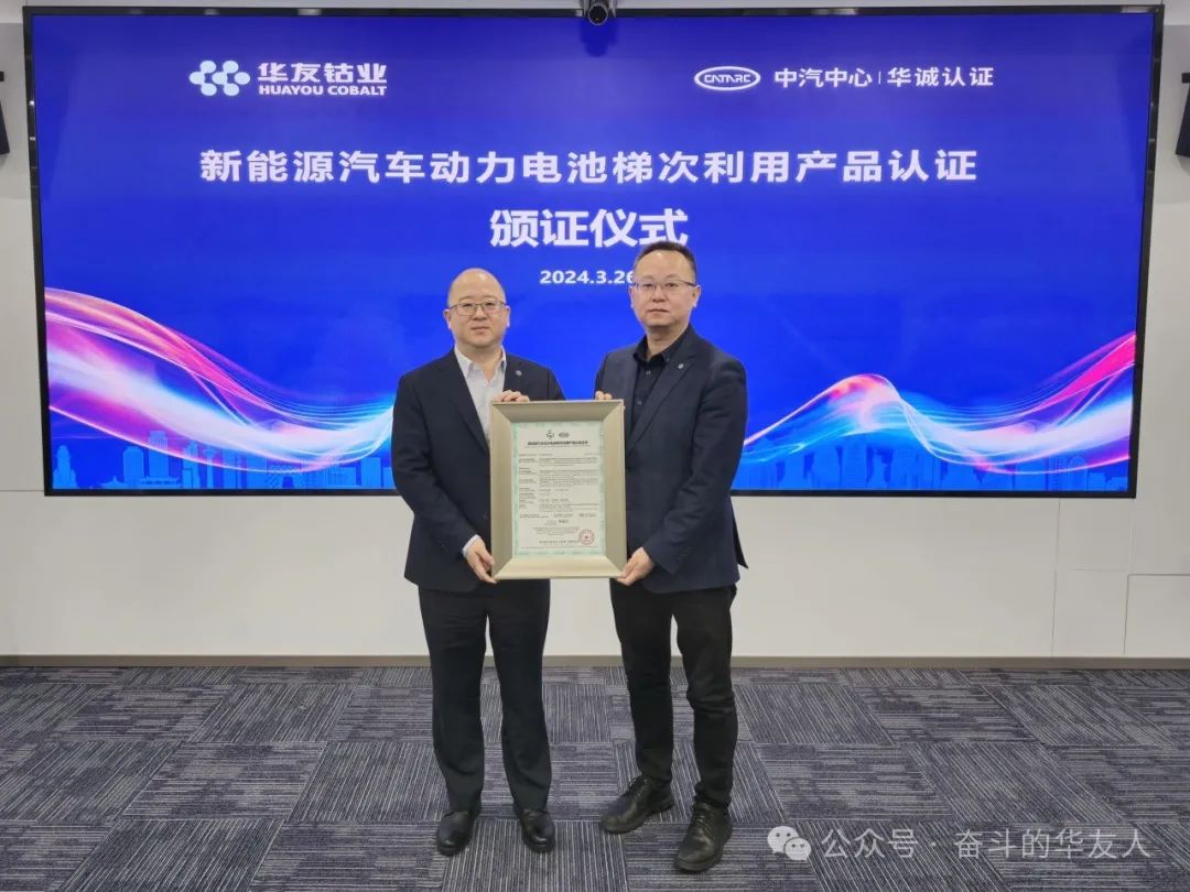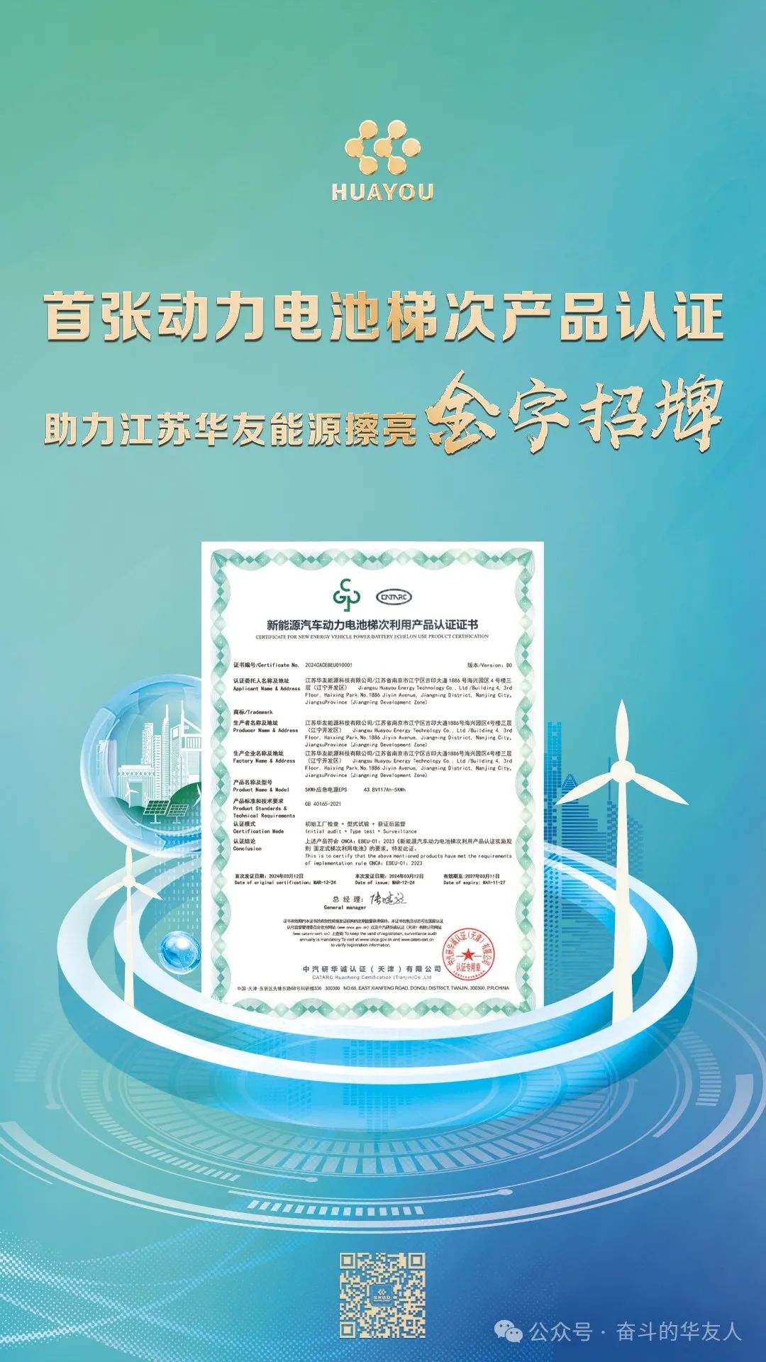 首張動力電池梯次產(chǎn)品認證助力江蘇華友能源擦亮“金字招牌”