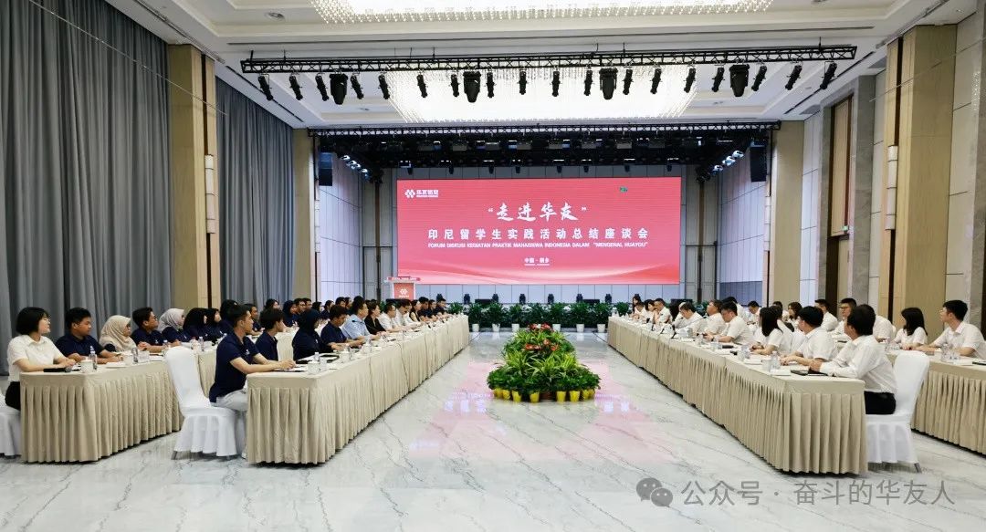 7月13日,此次活動總結座談會在集團總部召開。東北大學國際教育學院院長于福曉、冶金學院副院長姜鑫、各位教授老師;華友鈷業董事長陳雪華、公司總部職能單位主要干部、26名印尼留學生參加。