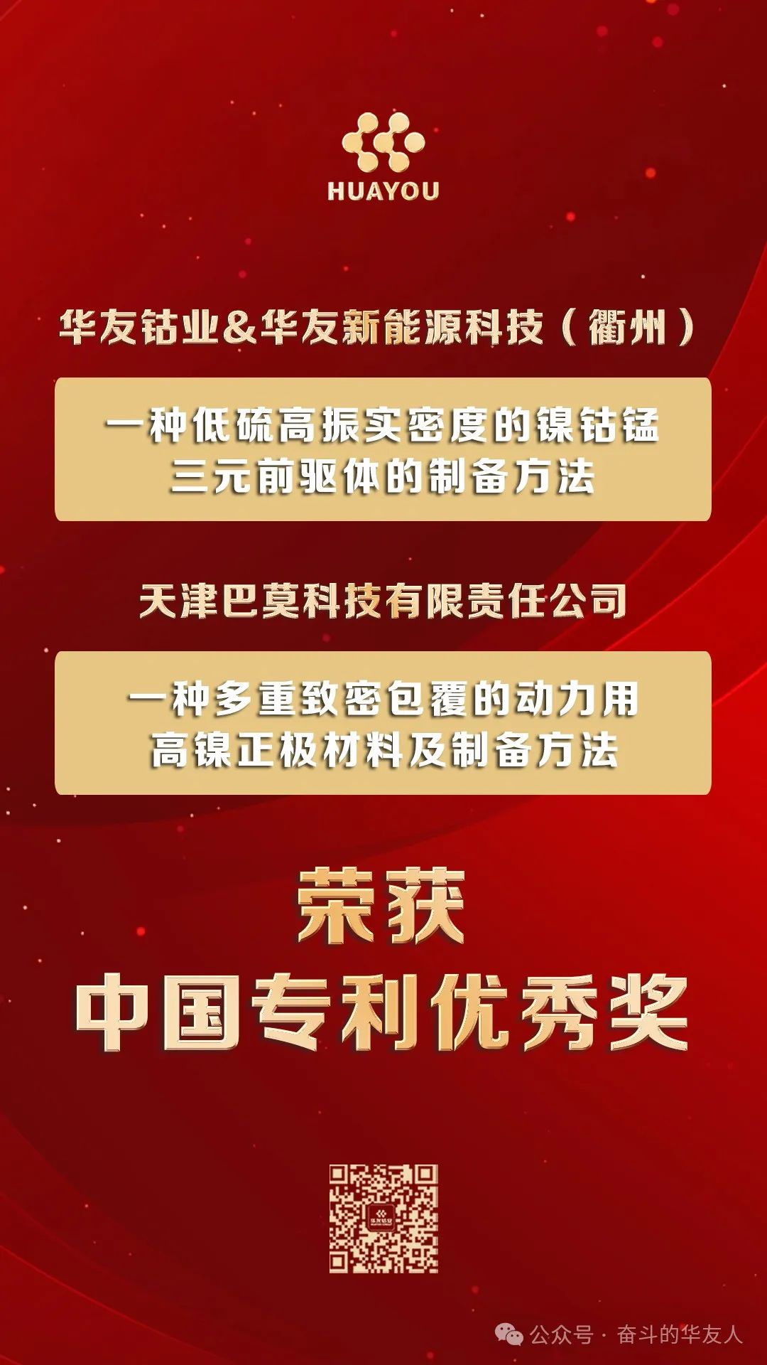 國(guó)家級(jí)榮譽(yù)+2!華友獲第25屆中國(guó)專利獎(jiǎng)