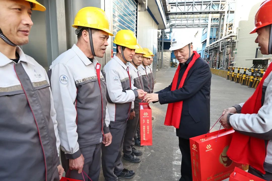 1月27日,華友新材料產(chǎn)業(yè)集團(tuán)開展“年三十”慰問(wèn)在崗員工活動(dòng),集團(tuán)高級(jí)副總裁、新材料產(chǎn)業(yè)集團(tuán)總裁徐偉,新材料產(chǎn)業(yè)集團(tuán)副總裁劉秀慶深入生產(chǎn)制造一線、安環(huán)消防部門及研發(fā)單位等地,向在崗員工送去親切的慰問(wèn)和誠(chéng)摯的關(guān)懷,并衷心祝愿大家新的一年幸福安康、闔家歡樂(lè)、巳巳如意。