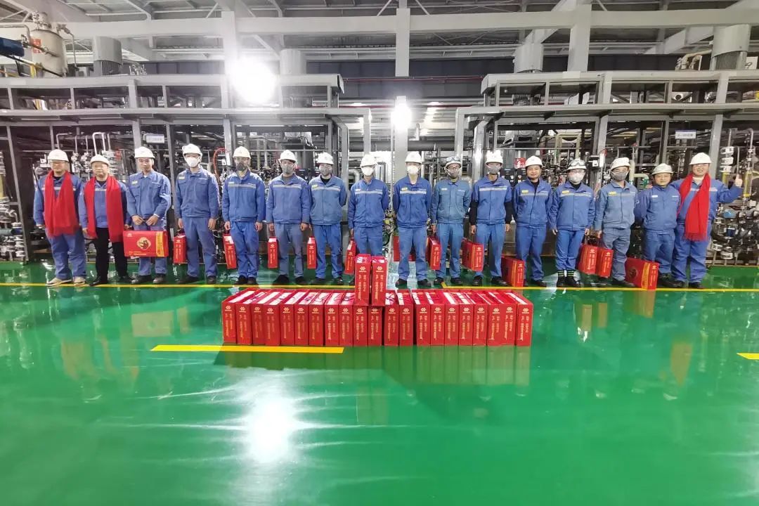 祥龍辭歲,金蛇起舞。1月27日,在新春佳節(jié)即將到來(lái)之際,集團(tuán)高級(jí)副總裁、新能源產(chǎn)業(yè)集團(tuán)總裁陳要忠,新能源產(chǎn)業(yè)集團(tuán)副總裁吳孟濤、李天成等領(lǐng)導(dǎo)代表公司向春節(jié)期間堅(jiān)守一線的員工送上了濃濃的關(guān)懷和溫暖,對(duì)他們舍小家、顧大家的崇高精神表示衷心感謝,同時(shí)也勉勵(lì)大家筑夢(mèng)拼搏、扎根崗位、奮勇向前,為公司高質(zhì)量發(fā)展貢獻(xiàn)智慧和力量。