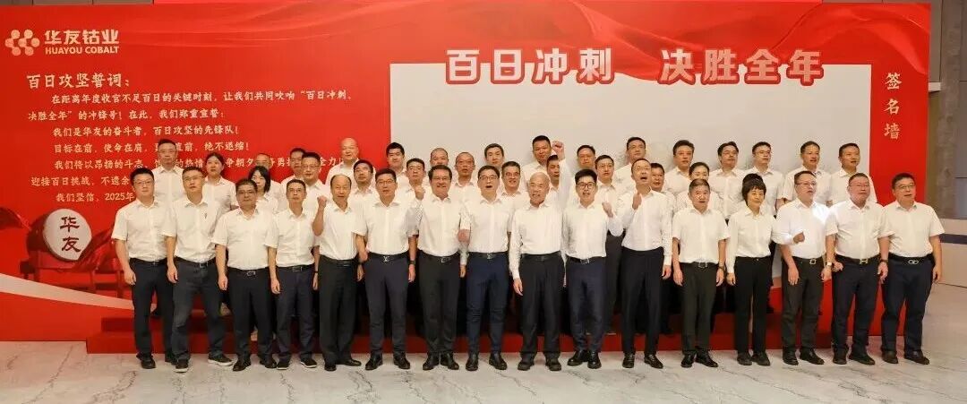 “我承諾:百日沖刺、決勝全年!華友必勝!必勝!必勝!”全體干部在陳雪華董事長帶領下莊嚴宣誓,并在簽名墻鄭重簽名。一筆一劃,皆是使命;一字一句,滿載擔當,凝聚成“使命必達”的華友力量!
