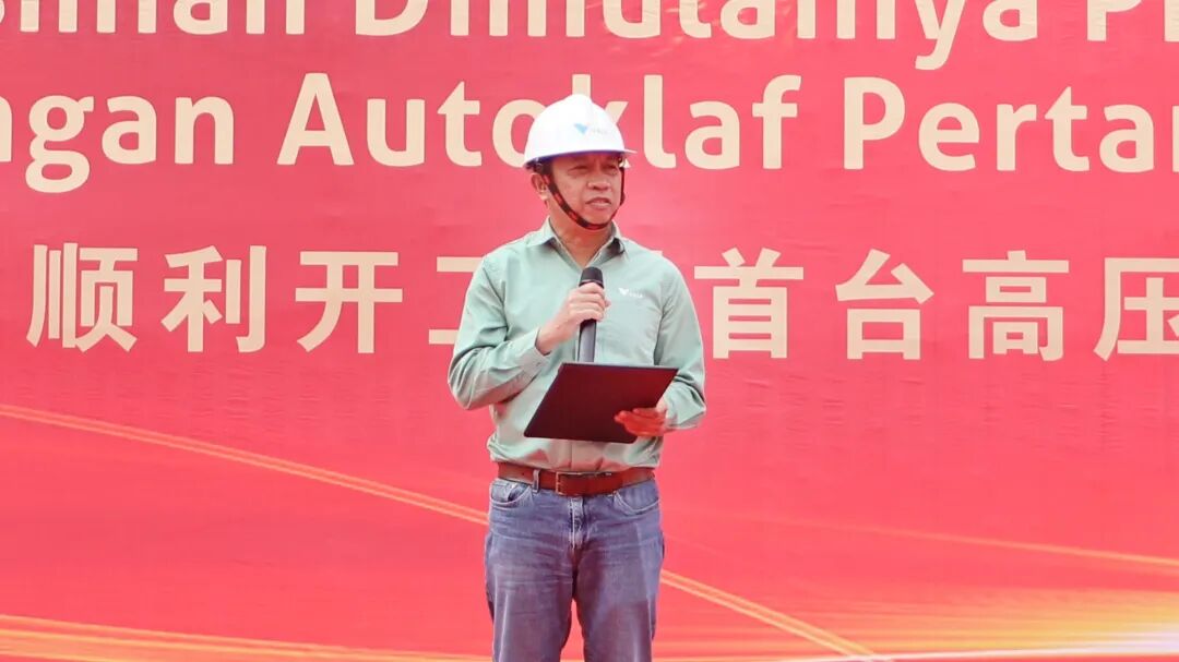 當地時間12月13日上午8時28分,華友印尼波馬拉園區(簡稱IPIP)內,由華友、淡水河谷、福特汽車三方投資的KNI高壓酸浸濕法冶煉項目建設地,人頭攢動、彩旗飄飄——首臺高壓釜成功安裝儀式正在舉行。